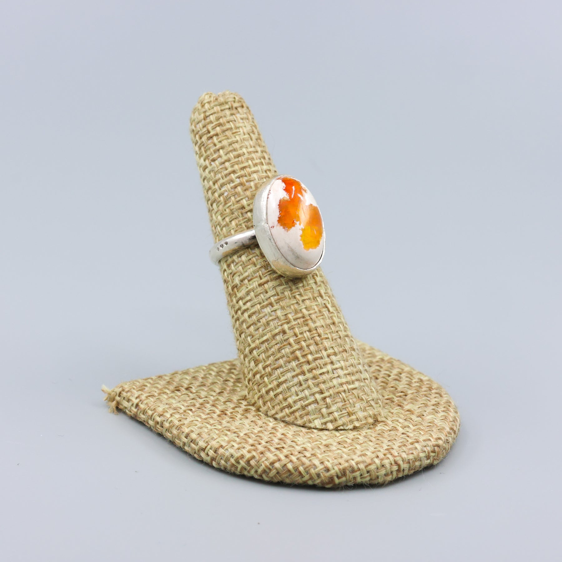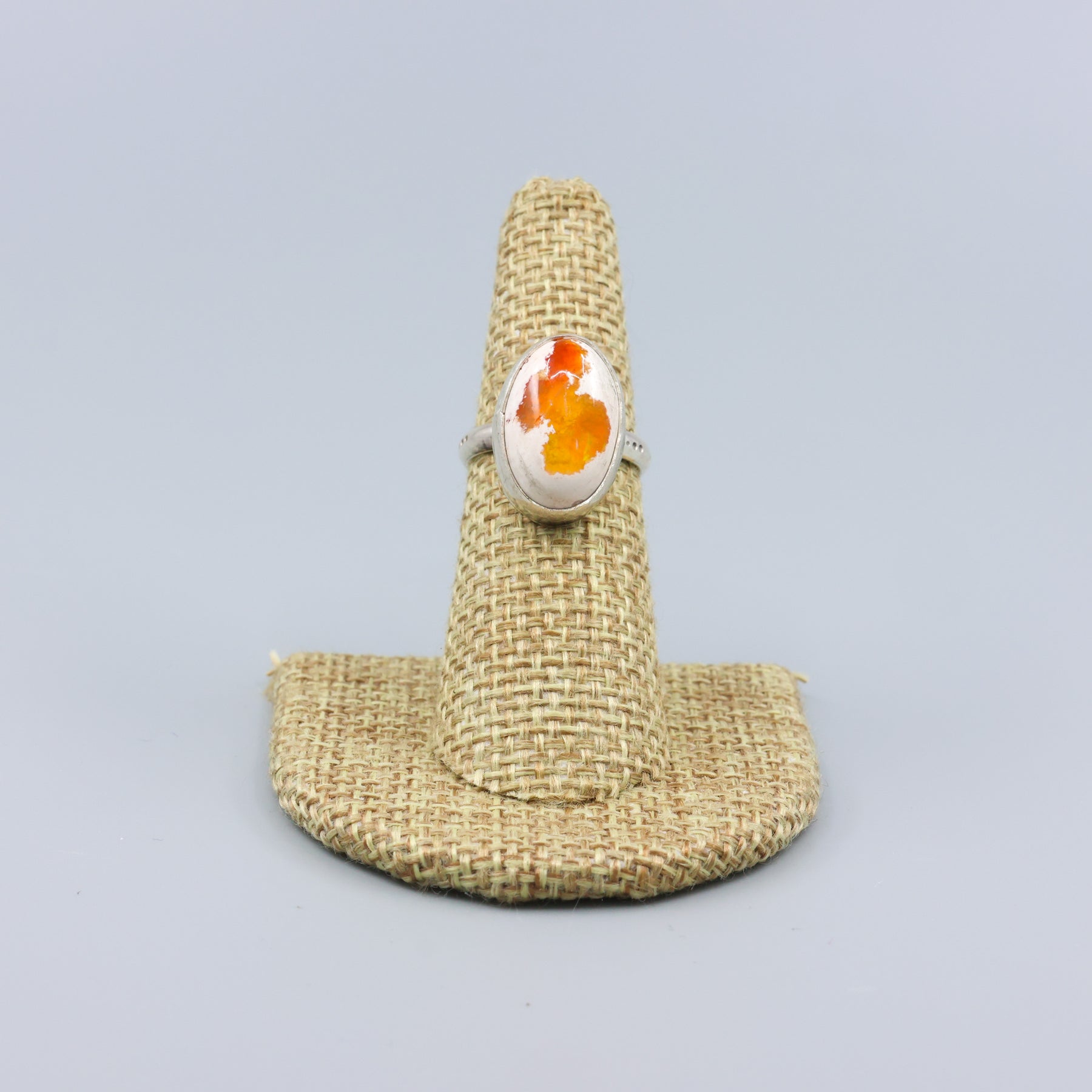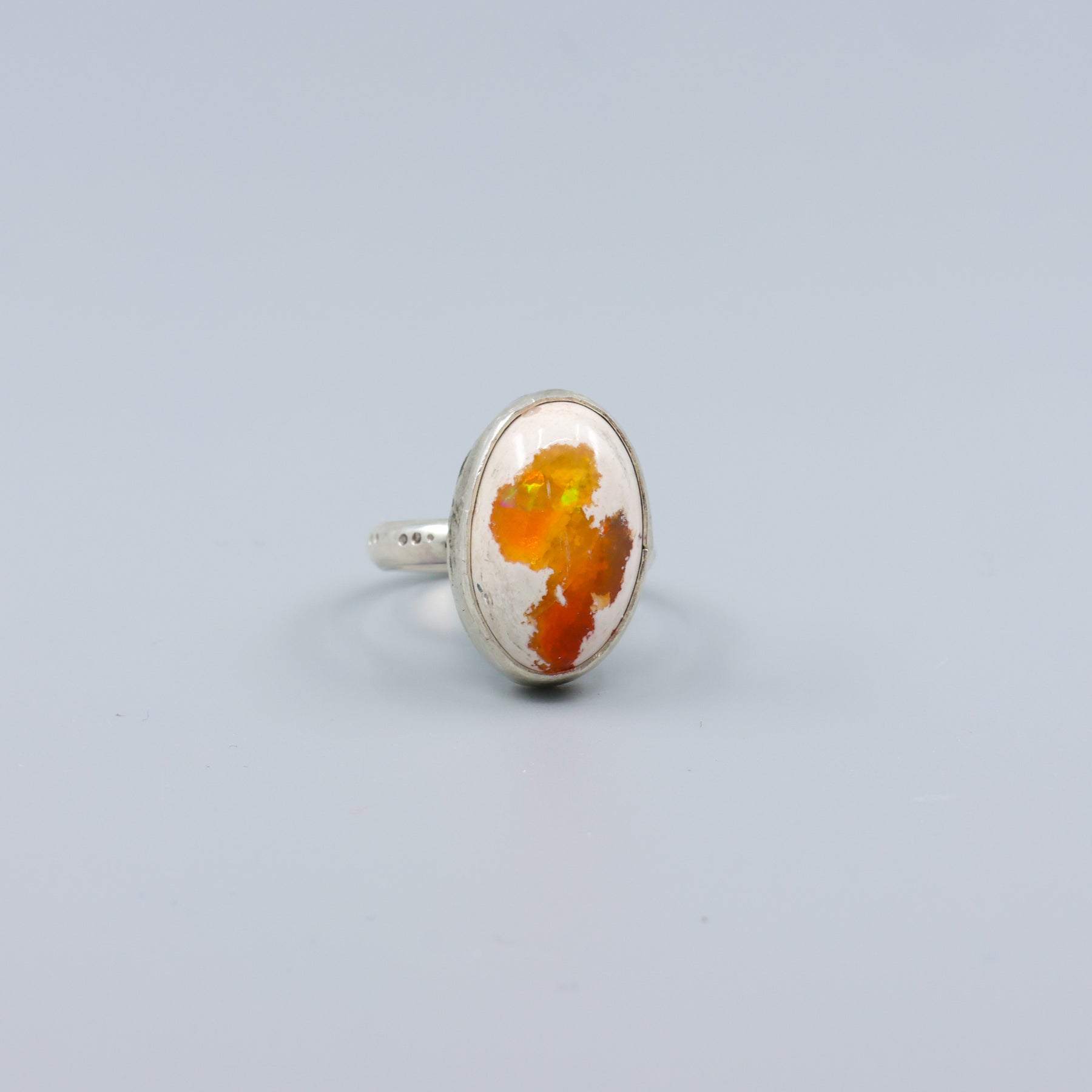 This unique Mexican Cantera Opal Sterling Silver ring features an oval cabochon on a sterling silver base and ring shank. Own a one-of-a-kind piece and elevate your style.