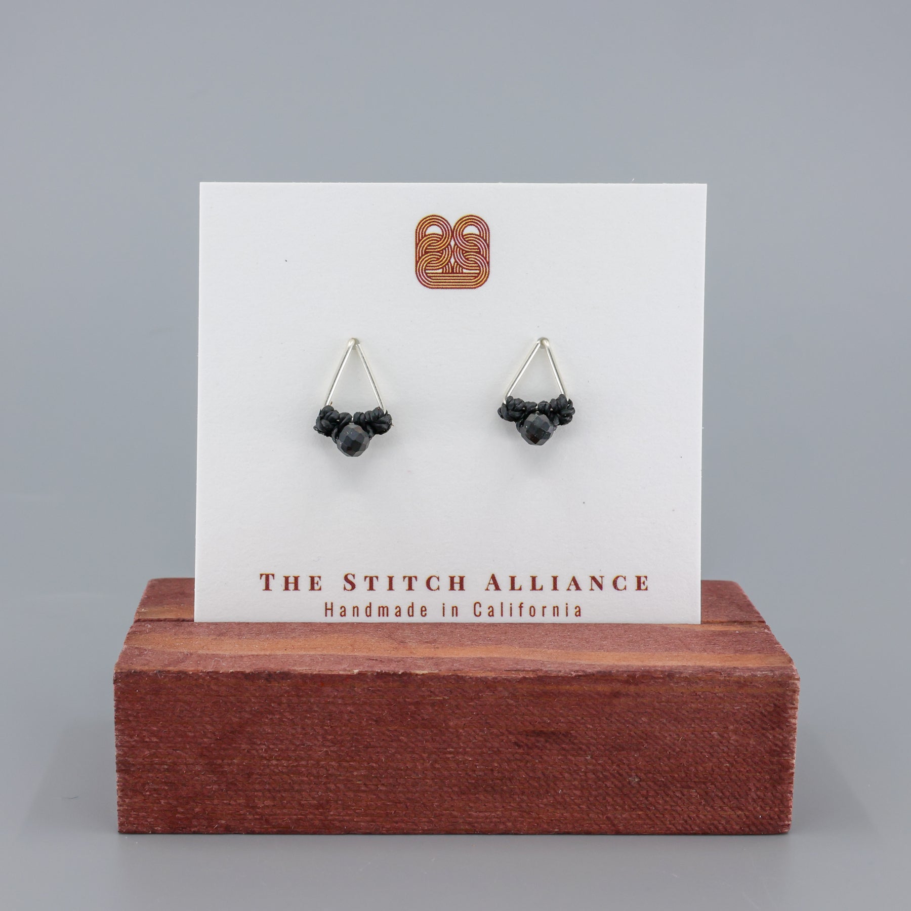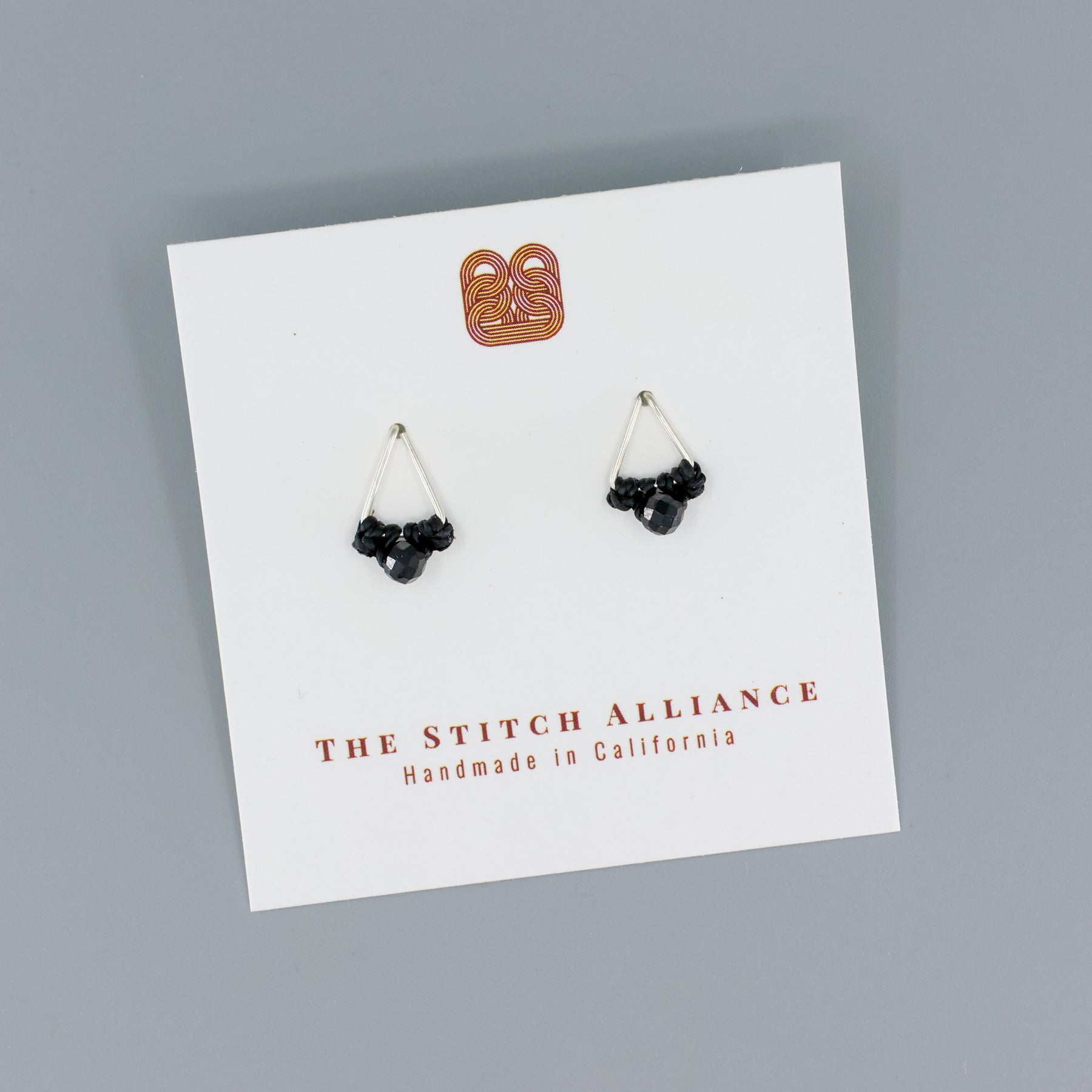 Sterling Silver 20 gauge wire in a hand-formed triangle is adorned by a 4mm black spinel bead attached with a simple macrame knot. Water-resistant, wear them all day for all of your adventures!